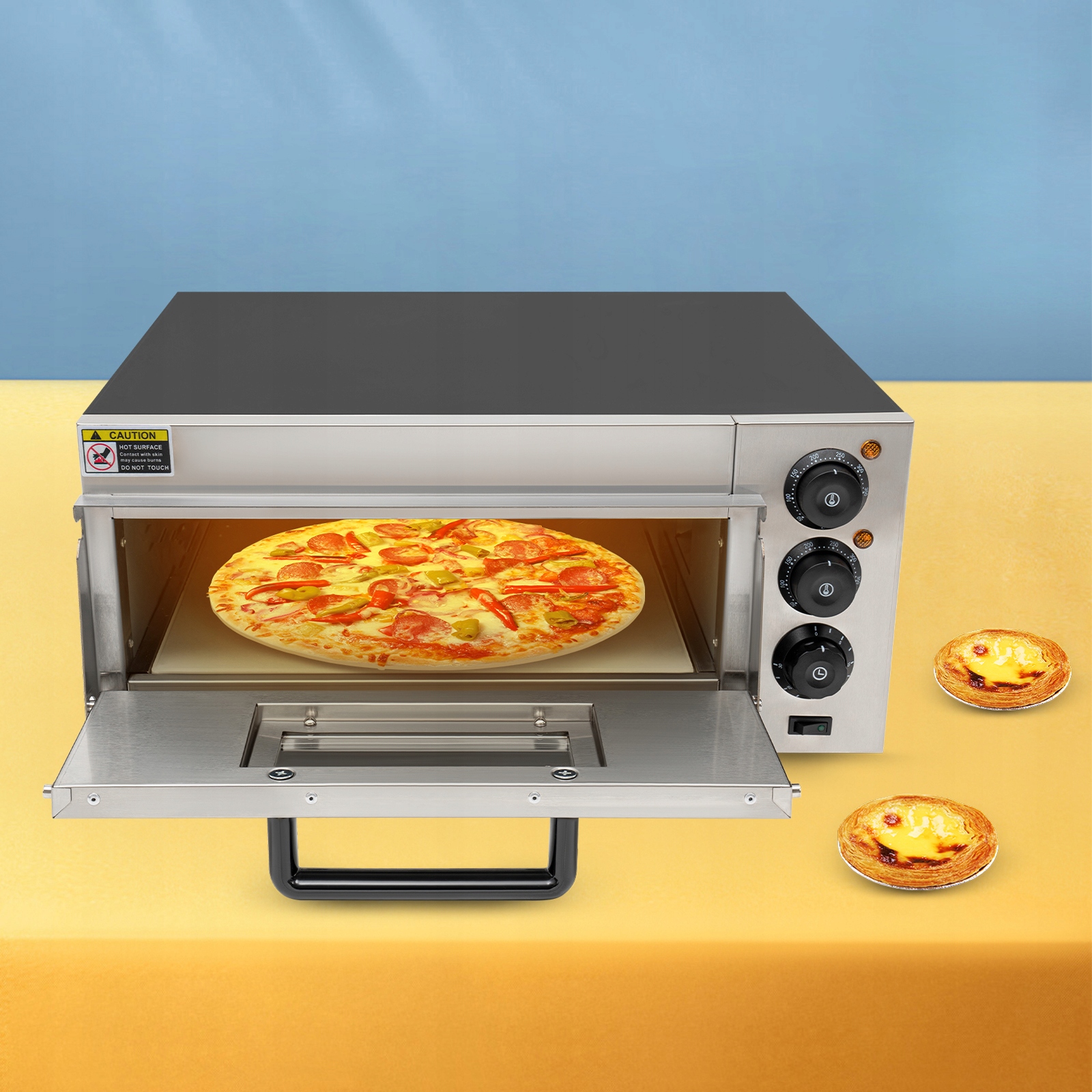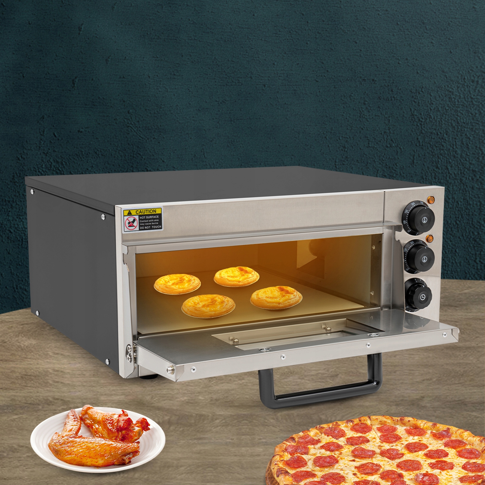 Підходить для ресторанів, пекарень і закусочних, а також для домашнього застосування, наприклад для сімейних вечірок і зустрічей друзів. Можна використовувати для приготування піци, закусок, кренделів і випічки.