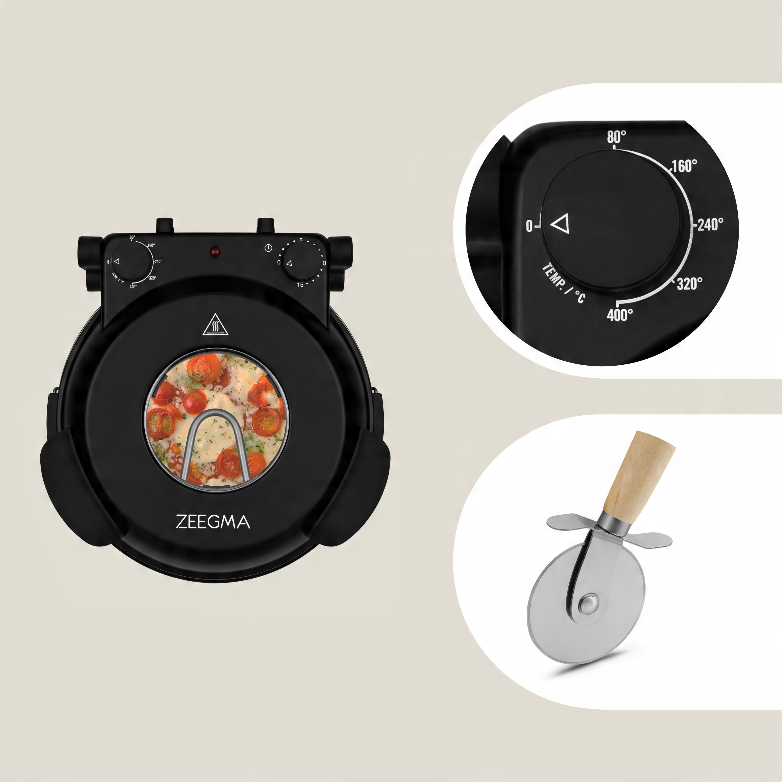 Піч для піци 400°C 1200 Вт 30 см Термостат Таймер Zeegma window БЕЗКОШТОВНО НІЖ