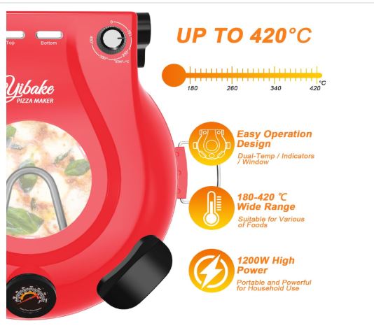- 【СМАЧНА ДОМАШНЯ ПІЦА】: Спечіть ідеальну піцу за 4 хвилини! Електрична піч для піци YIBAKE підвищує температуру до 420°C, щоб ви могли щоразу отримувати пухнасту, хрустку піцу.