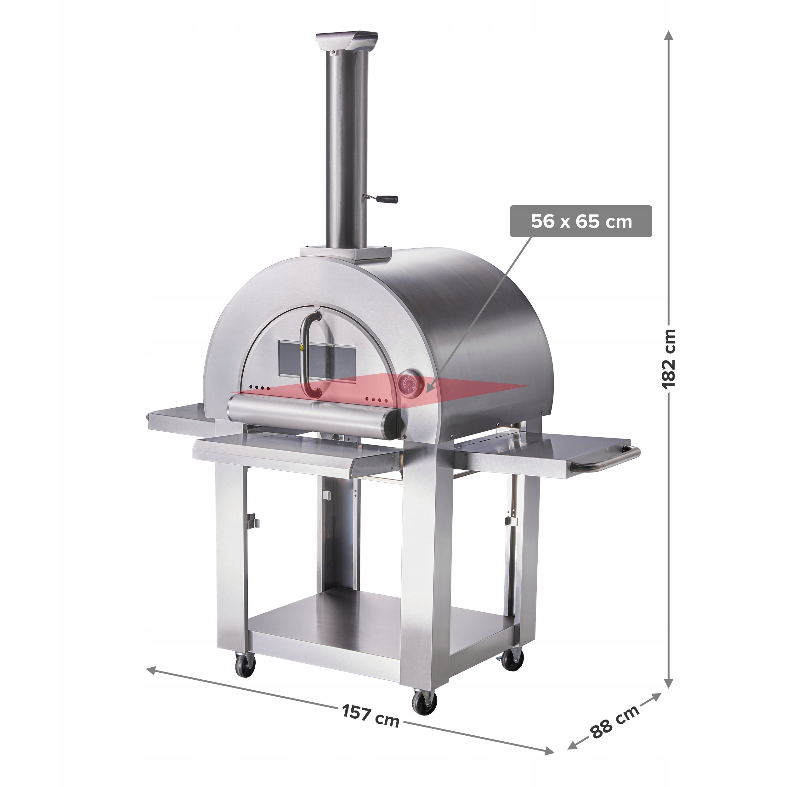 - завдяки використанню транспортувальних коліс піч для піци можна легко перемістити у вибране місце