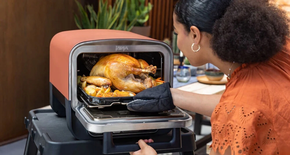 Вулична електрична духовка NINJA Woodfire OO101EU — це універсальний пристрій, який дозволяє готувати страви в різних стилях просто неба. Він пропонує 8 режимів, включаючи гриль, копчення, випікання та підтримання тепла. Завдяки цьому ви зможете приготувати соковиті стейки, ароматні копченості, хрустку піцу або ніжну випічку. Це рішення для створення функціональної кухні в саду, що дозволяє експериментувати з різними кулінарними прийомами.