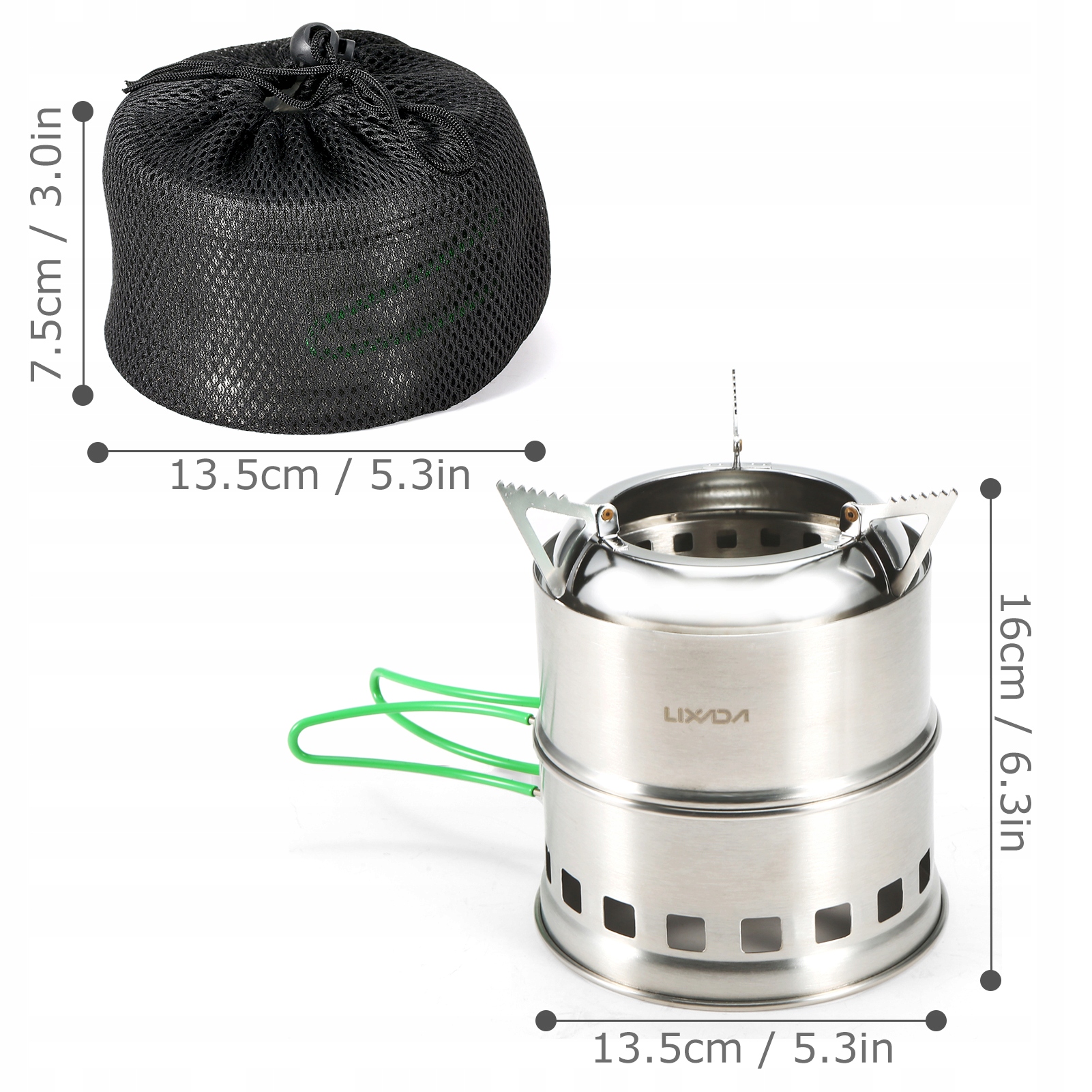 Ця піч для кемпінгу з нержавіючої сталі дуже міцна, щоб витримувати зовнішні умови. Він має подвійну стінку та вентиляційні отвори в нижній частині для хорошої вентиляції. Підходить для кемпінгу, походів, туристичних походів, пікніків, барбекю, відпочинку на природі та пригод.