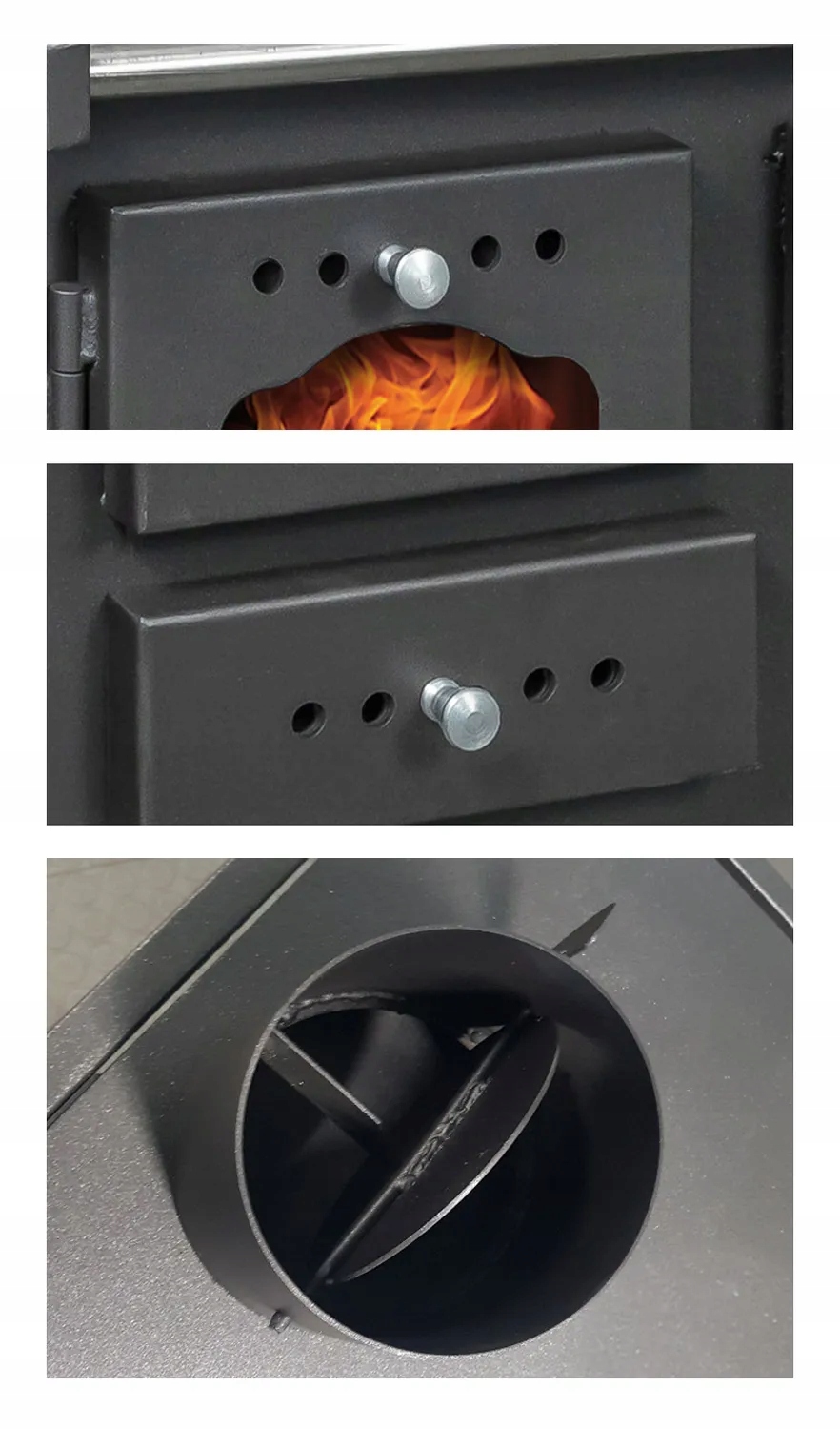 - Two pipes on the heating plate - the possibility of cooking directly on the fire Even heating of the oven