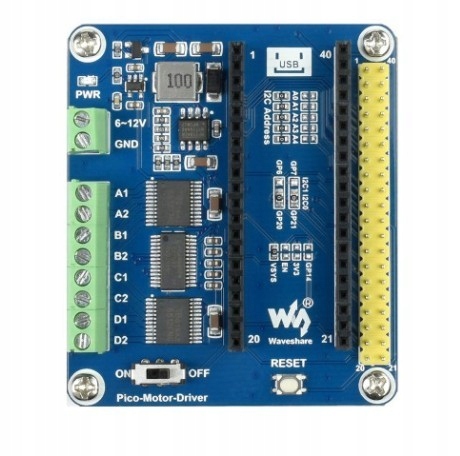 Модуль з контролером двигуна TB6612FNG і контролером PCA9685 PWM призначений для Raspberry Pi Pico . Плата оснащена додатковим роз'ємом з контактами мікроконтролера, що дозволяє користувачеві підключати додаткові модулі. Плата має дві подвійні Н-мостові системи та ШІМ-контролер, що дає можливість одночасно керувати рухом чотирьох двигунів постійного струму. Модуль буде використовуватися при проектуванні мобільного автомобіля або домашньої автоматизації. Повна документація з прикладами доступна на Wiki-сторінці продукту.