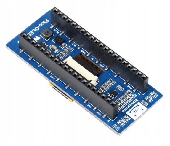 Модуль із 2,23" чорно-білим OLED-дисплеєм і роздільною здатністю 128x32 пікселів призначений для роботи з Raspberry Pi Pico. Він має вбудований контролер SSD1305, який спілкується через інтерфейс SPI або I2C. Модуль сумісний з системами 3,3 В. Повна документація з прикладами доступна на Wiki-сторінці продукту.