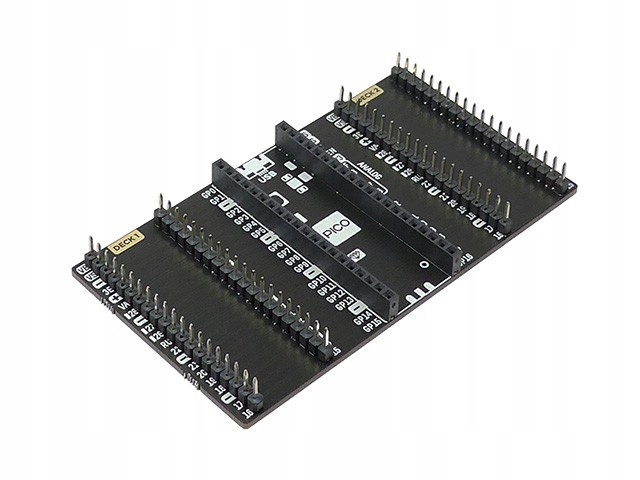 Контактний розширювач, розроблений для плат Raspberry Pi Pico. Він оснащений стандартним гніздом для прямого підключення до Raspberry Pi Pico або підключення через кабелі. Він має два набори штифтових роз’ємів 2x20, які дозволяють підключати додаткові модулі розширення. Мітки контактів, розташовані у верхній частині плати, значно полегшують створення прототипів.