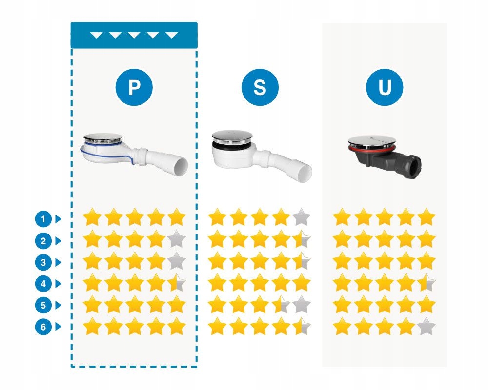 Порівняльна таблиця функціональних властивостей доступних типів душових піддонів