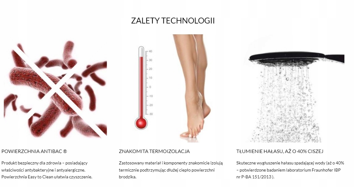 - гладка поверхня зі стійким блиском, що полегшує утримання душового піддону в чистоті