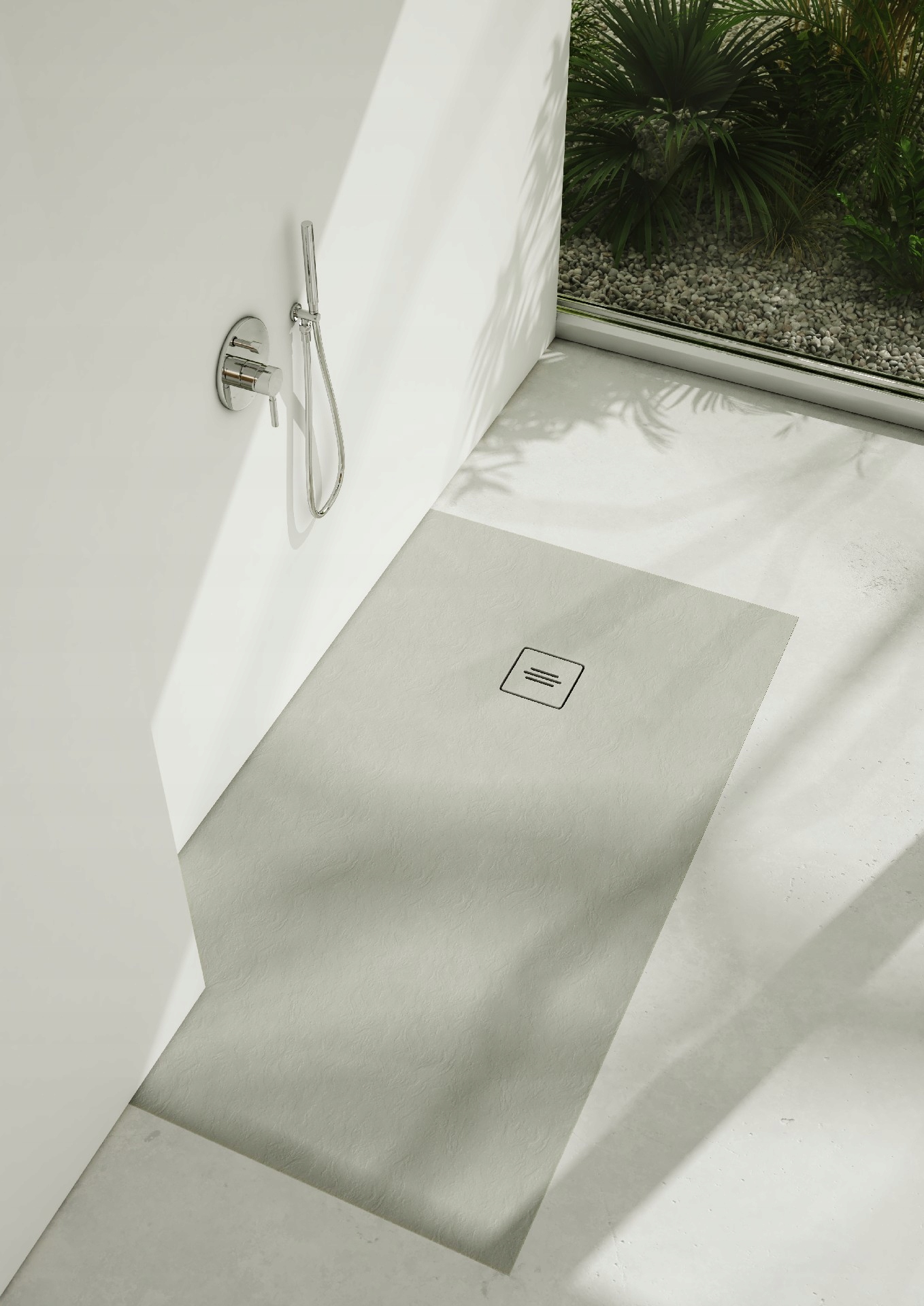 Серія Protos Cement Stone має світло-сіру поверхню зі структурою каменю. Загальна висота всього 3,5 см і мінімалістичний дизайн, вони ефектно підкреслюють душову зону, неповторно прикрашаючи інтер'єр. Поверхня надзвичайно міцна та має властивості Easy to Clean® і Antibac®.
