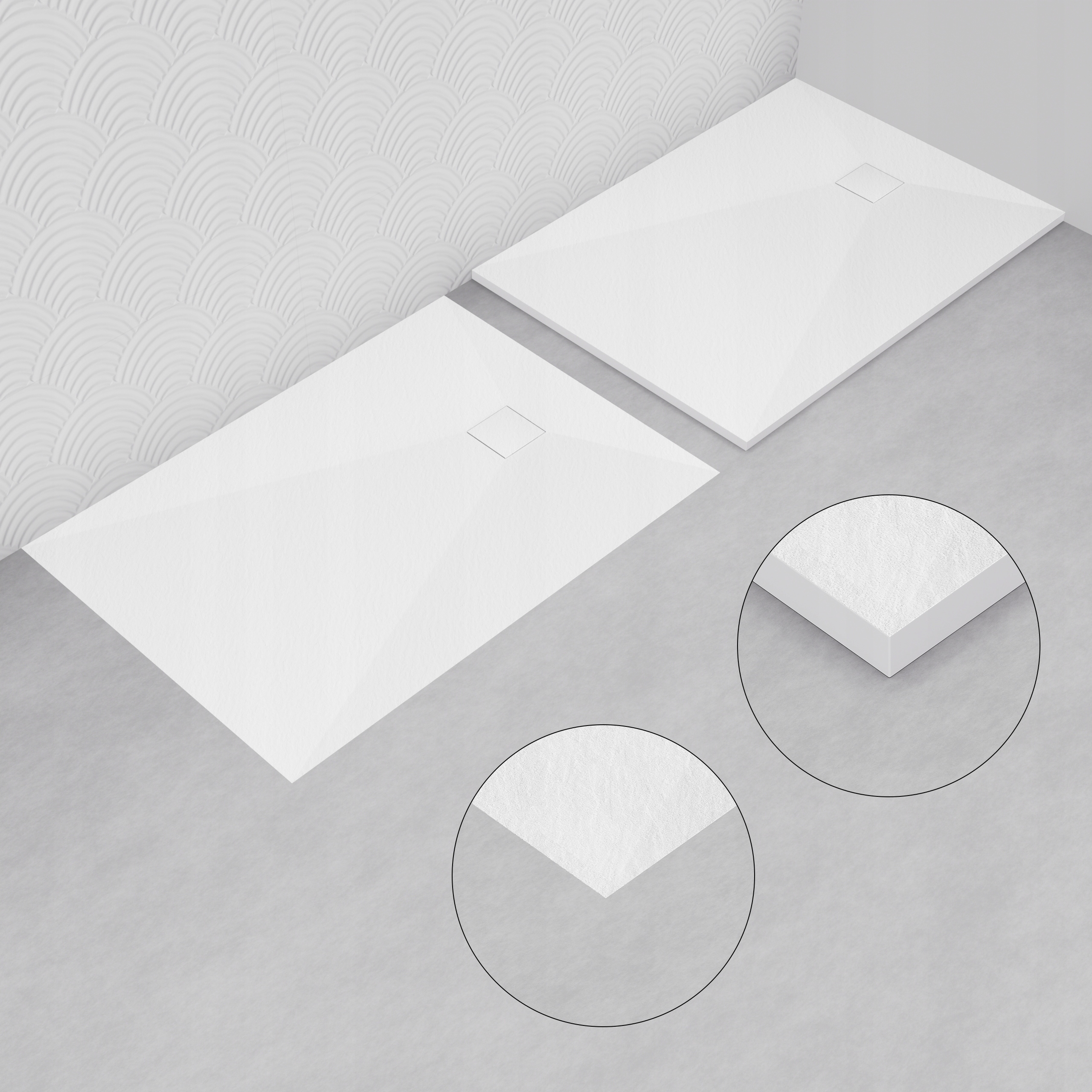 ✅ Дно душового піддону додатково оснащене армуванням скловолокном із сітчастим виглядом, що підвищує його міцність і стійкість.