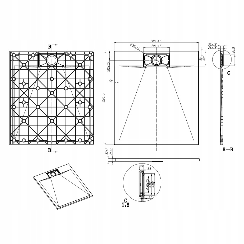 Технічні дані душового піддону