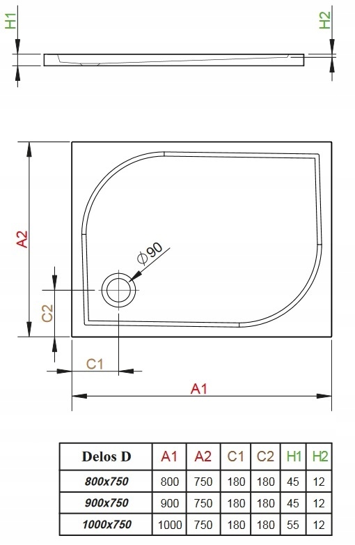 Предмет продажу душовий піддон Delos D 100х75х5,5х1,2 (глиб.). Душовий піддон акриловий, дуже неглибокий, призначений для установки прямо на підлогу, з отвором для сифона діаметром 90 мм. Душові піддони цієї серії сумісні з сифонами TB90, TB21, TB XS, R500, R580, R510, R400 SLIM або R400W SLIM (доступні на інших наших аукціонах).