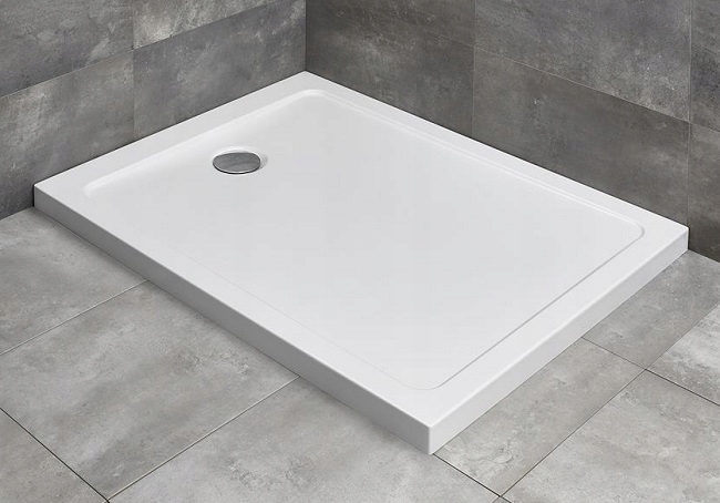 - Білий душовий піддон, виготовлений з акрил