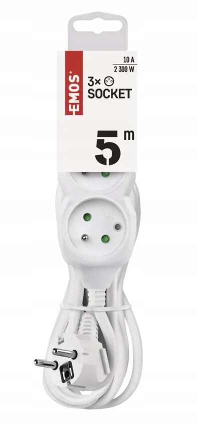 ПОДОВЖУВАЛЬНИЙ КАБЕЛЬ ПІДДОВЖУВАЧА НА 3 РОЗЕТКИ ІЗ ЗАЗЕМЛЕННЯМ 5 М БІЛИЙ EMOS