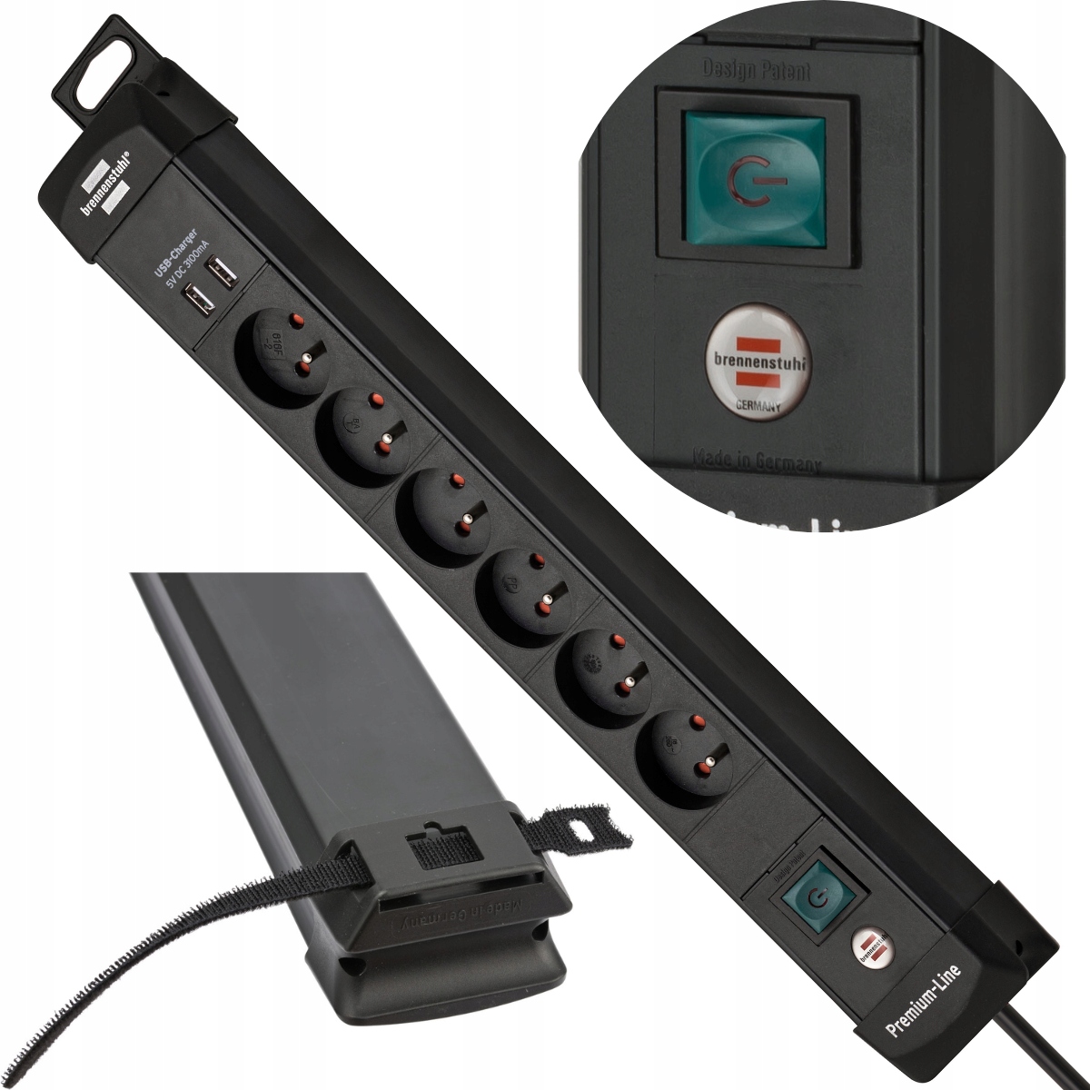 Подовжувач живлення на 6 розеток Brennenstuhl Premium-Line чорного кольору з 2 USB-розетками для заряджання та кабелем 3 м переконує з якістю та безпекою у всіх сферах. Його акуратний і міцний корпус виготовлений зі спеціального пластику, який дуже стійкий до пошкоджень. Він не тільки має підвищений захист від контакту, але й переконує такими характеристиками: