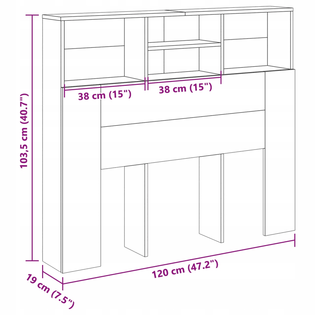 підголівник з полицями, стара деревина, 120x19x103.5 см