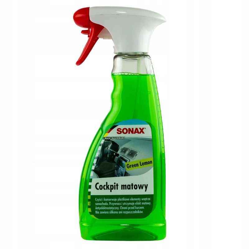 Особливо рекомендується для використання на поверхнях з виразною матовою структурою, але також підходить для догляду за елементами з дерева. Використання кокпіта відновлює та підтримує початковий матовий ефект очищеної поверхні та зменшує утворення сліпучих світлових відблисків. Не містить силікону та розчинників.