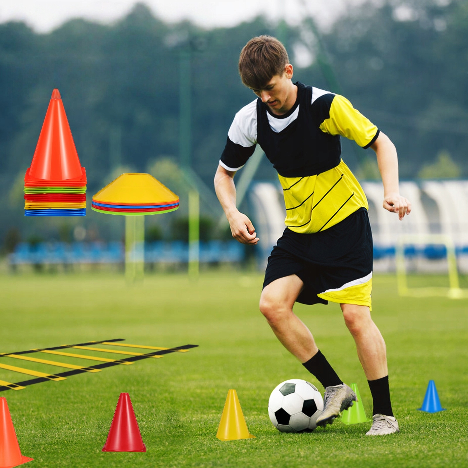 ✅ Універсальне використання - для футбольних тренувань, курсу перешкод, визначення поля ігор та загальних вправ на розвиток.