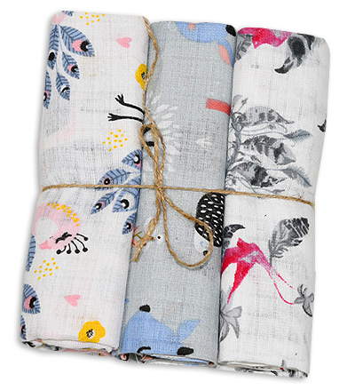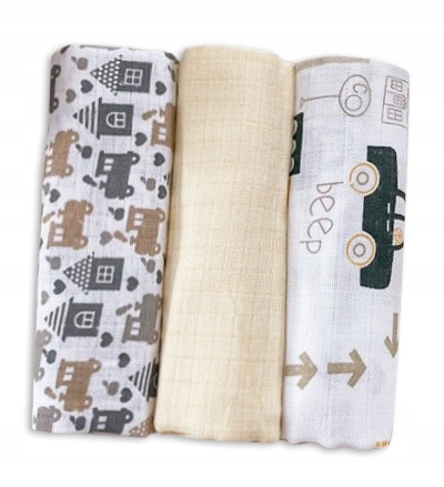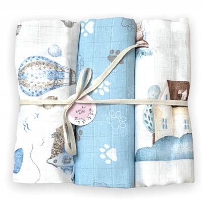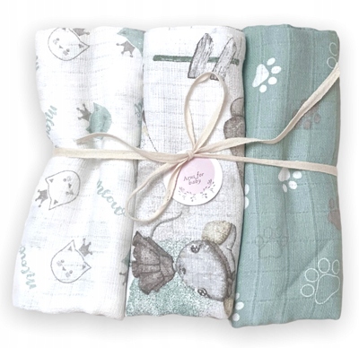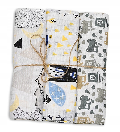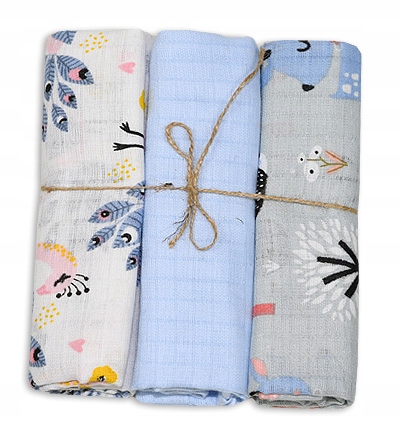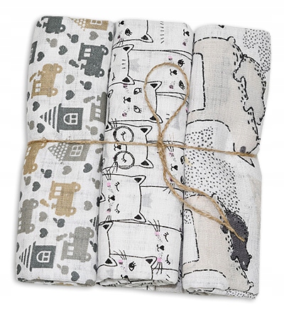 - Різнокольорові тканинні підгузки з різними дитячими візерунками, 3 шт.