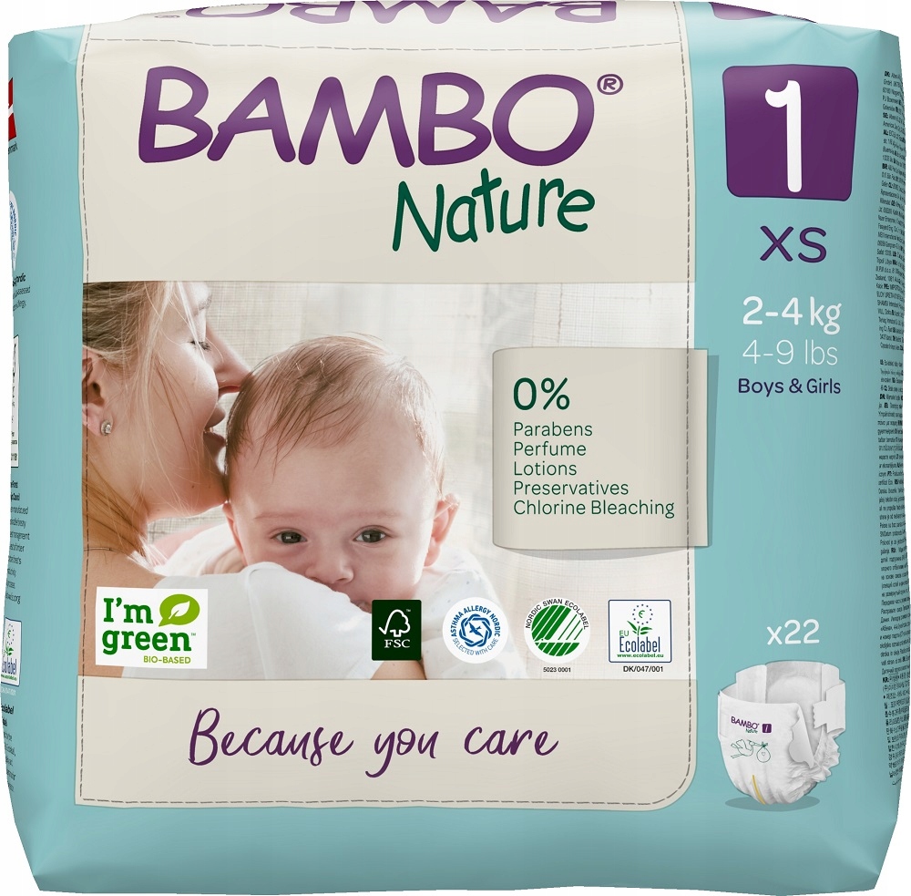 Памперс має маркування FSC, Nordic Swan і Astma Allergy. Крім того, він пройшов дерматологічне тестування. Bambo Nature – Тому що ви дбаєте.