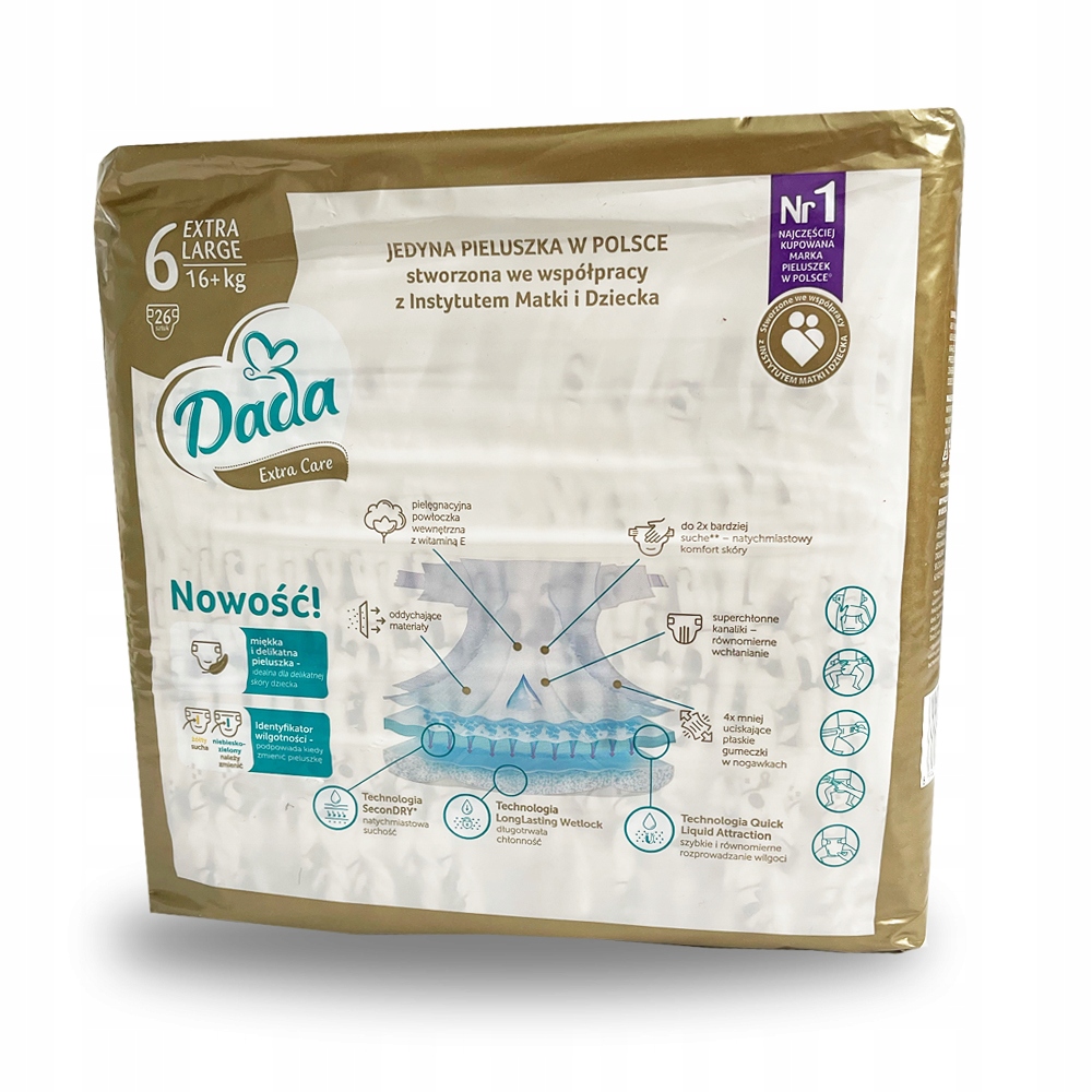Улюблені мамами та татусамиdada extra care 6 large підгузникиякі завдяки інноваційній технології виробництва значно вирізняються серед наявних на ринку підгузників!
