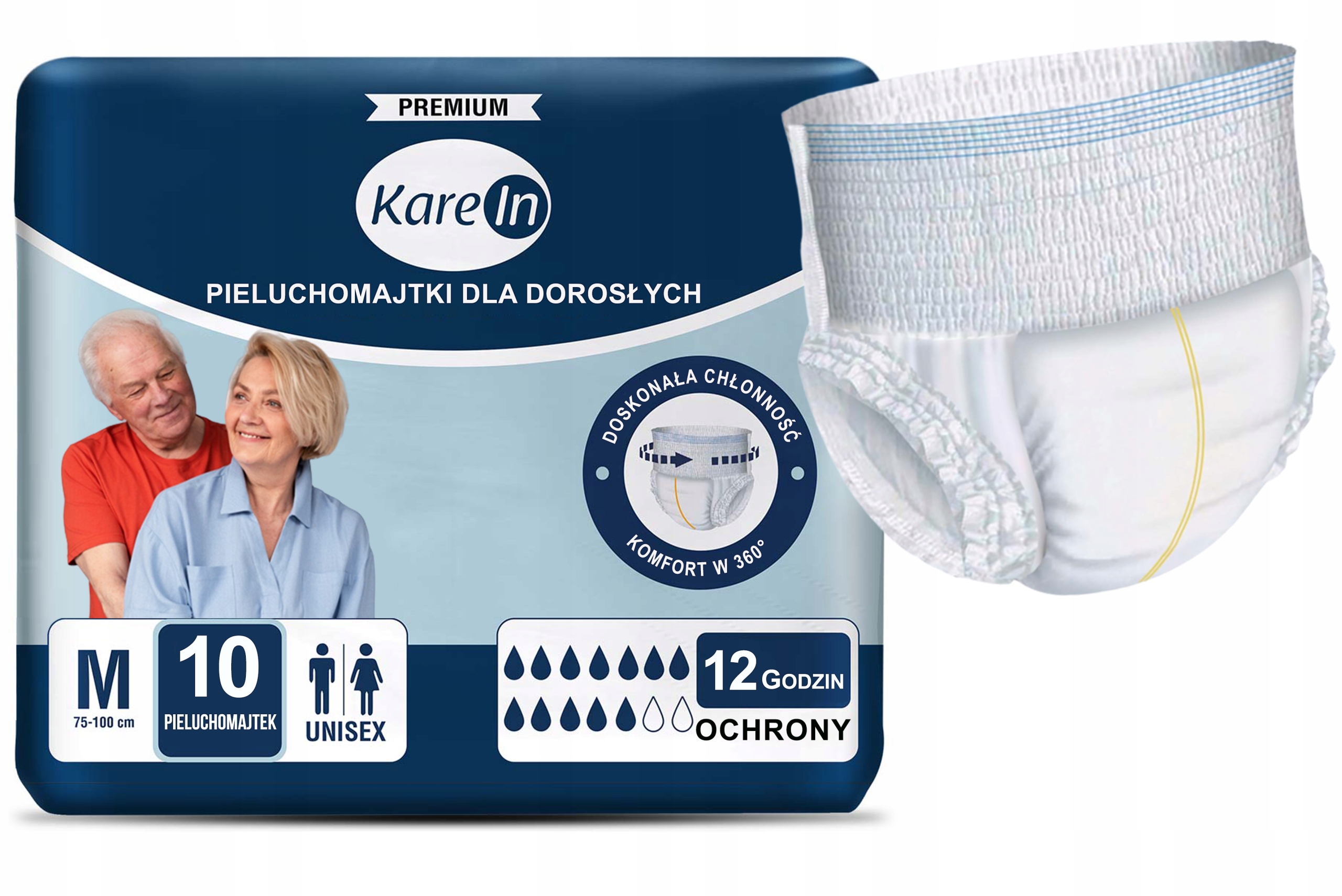 Підгузки KareIn характеризуються анатомічною формою, м’якими матеріалами та гнучкими волокнами. Їх повна безпека та ідеальна посадка роблять їх ідеальним вибором для фізично активних людей, людей з деменцією, психічно дезорієнтованих людей, незалежних людей і тих, хто потребує допомоги в повсякденній діяльності.