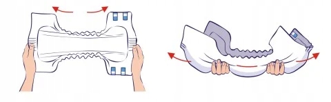 1. Розгорніть підгузники, візьміть їх за два кінці й злегка потягніть.