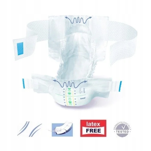 Seni Optima Trio - підгузки з регульованим стегновим поясом. Вони поєднують в собі переваги анатомічних підгузників і традиційних підгузників. Особливо рекомендовані людям із ожирінням.