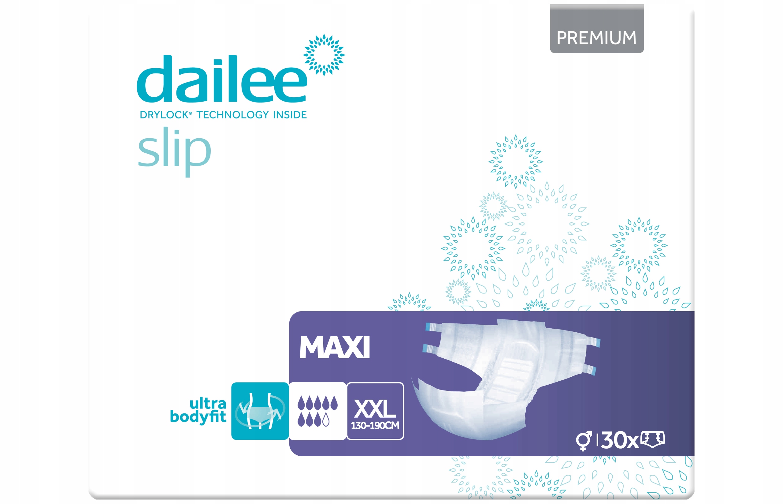Dailee Slip Premium Maxi - це підгузники від бельгійського виробника, призначені для дорослих з важким або дуже важким нетриманням сечі. Поглинаюча здатність цього підгузка становить 8/9 крапель.