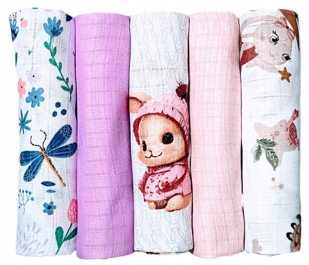 Набір складається з 2-х однотонних підгузників і 3-х з принтом. Візерунки та кольори як на фото.