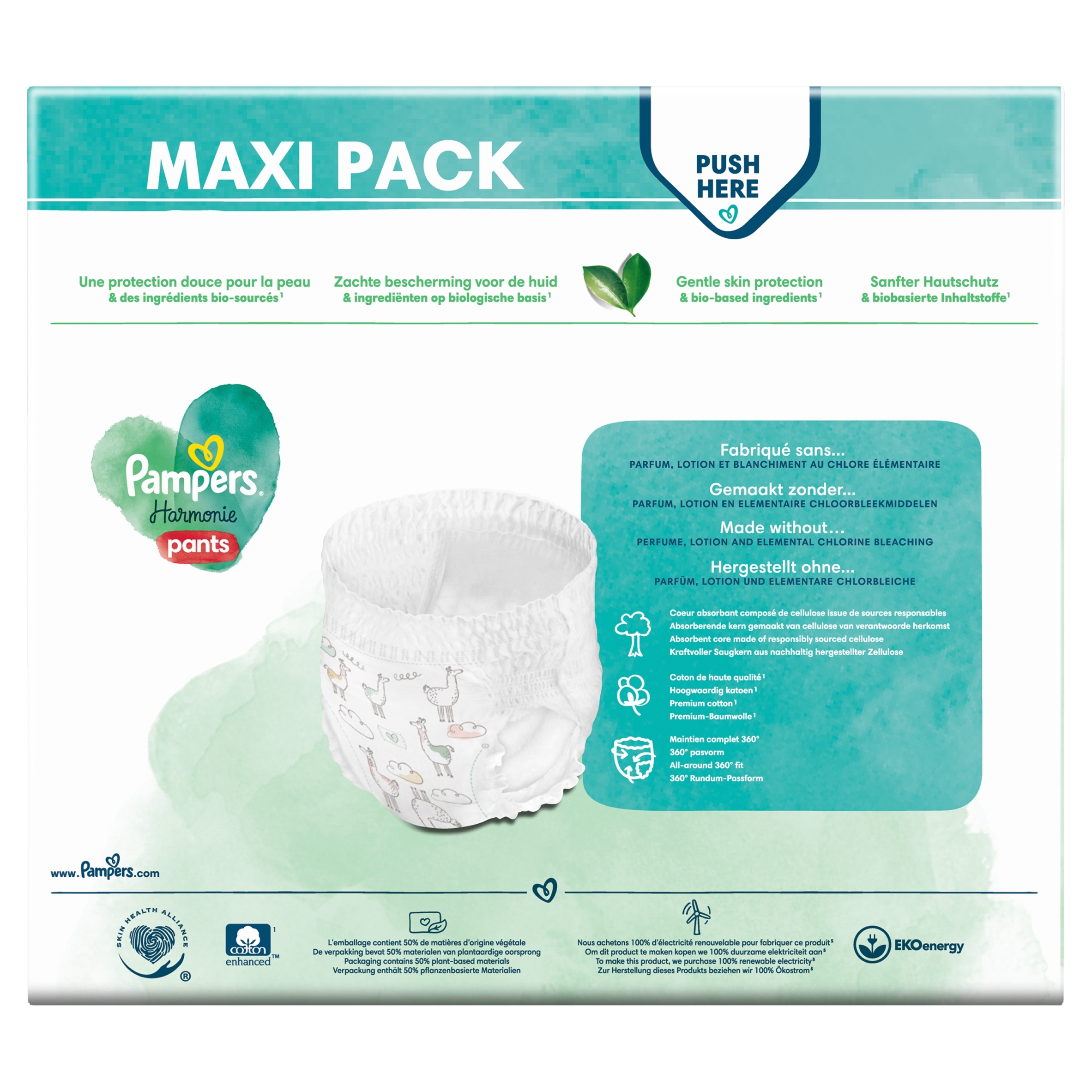 100% поглинання Pampers та інгредієнти рослинного походження. Підгузки Pampers Harmonie виготовлені з бавовни найвищої якості та м'яких матеріалів рослинного походження, дерматологічно протестовані та ніжні до шкіри малюка. 50% абсорбуючої серцевини виготовлено з біологічних інгредієнтів, що зменшує використання пластику на основі викопних речовин*.