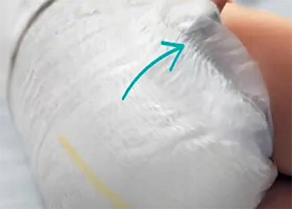 Покриття DermaComfort із абсорбуючими каналами відводить вологу та вміст підгузника від шкіри дитини, утримуючи їх усередині підгузника.