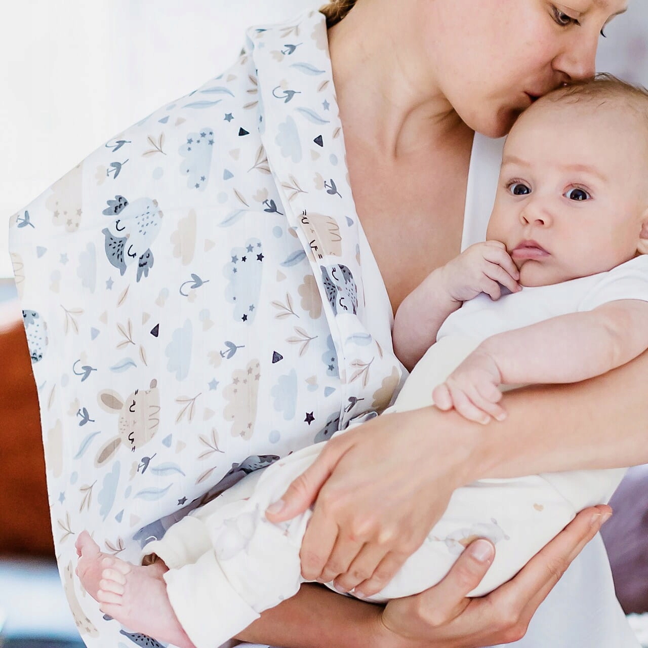 Муслінові підгузки — це універсальні та надзвичайно практичні вироби, які незамінні в догляді за дитиною. Виготовлені з легкої і ніжної муслінової тканини, вони забезпечують найвищий комфорт і безпеку для ніжної шкіри малюка. Муслінові підгузки мають багато застосувань - їх можна використовувати як ковдру, сповивальник, ігровий килимок, чохол для годування, а також як серветку для очищення обличчя та тіла. Вони надзвичайно м'які, поглинаючі та добре пропускають повітря, що допомагає підтримувати оптимальну температуру тіла. Муслінові підгузники дуже практичні в повсякденному використанні. Їх можна легко скласти та взяти з собою в подорож, а також легко прати та швидко сушити.