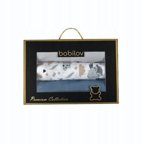 Набір муслінових підгузників упакований в елегантну подарункову коробку.