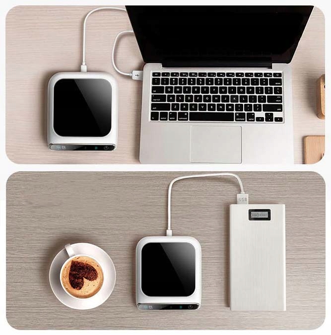 Завдяки настільному обігріву ви можете раз і назавжди попрощатися з холодною кавою чи чаєм. Потужний нагрівач потужністю 10 Вт дозволяє підігріти опалення плита до 110 ℃ і температура води до 55 ℃. Пристрій живиться від порту USB - що дозволяє підключити його, наприклад, до комп'ютера. Завдяки компактним розмірам обігрівач можна легко взяти з собою, наприклад, на роботу.