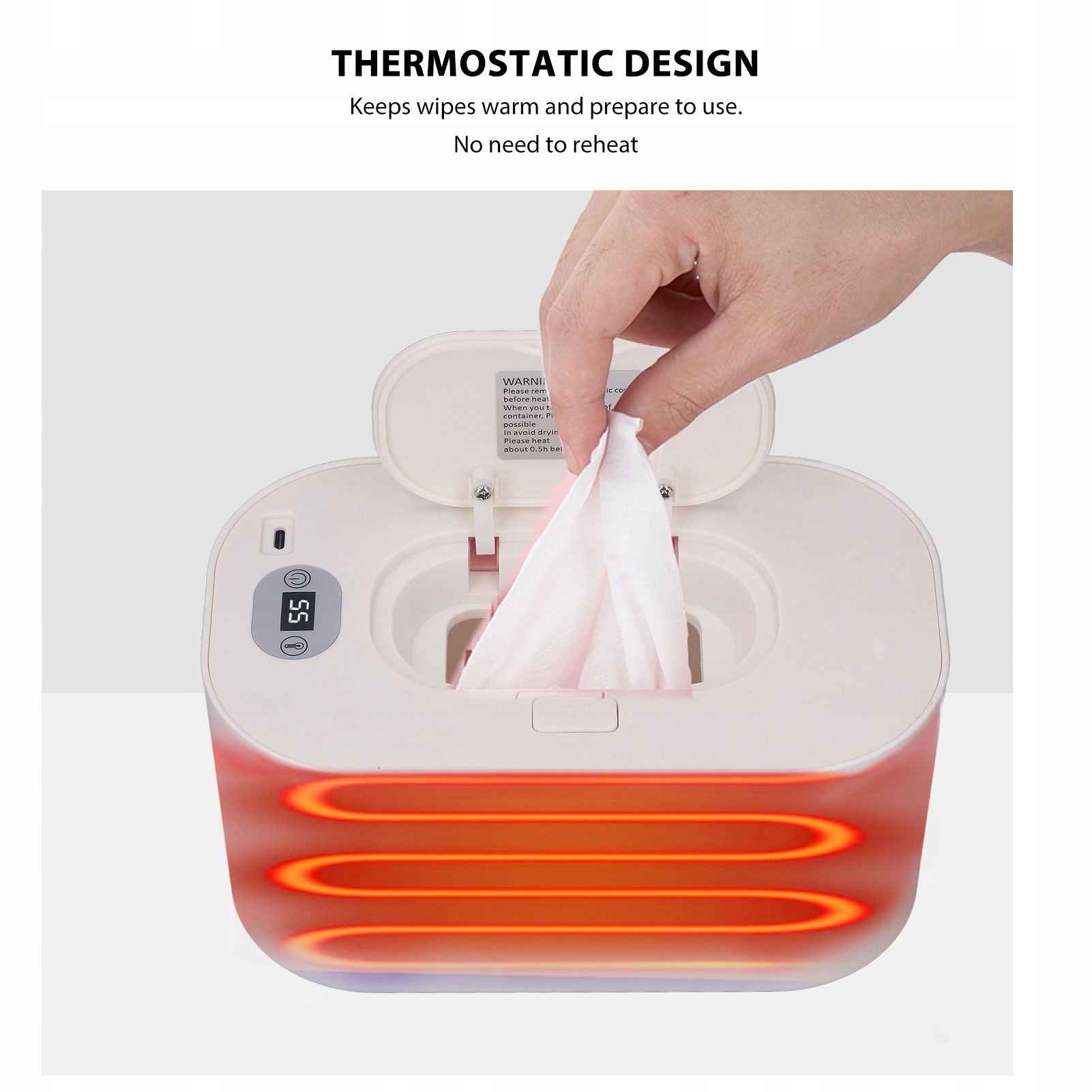 3. КОНСТРУКЦІЯ ВЕЛИКОЇ ЄМНОСТІ: Диспенсер для вологих серветок, що зігріває, має велику місткість, яка може вмістити кілька вологих серветок, що зручно для щоденного використання.