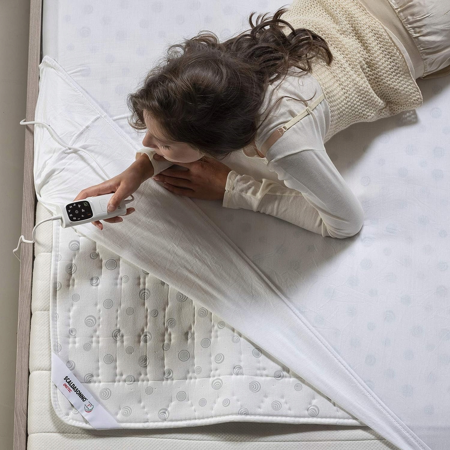 Обігрівач для односпального ліжка Imetec Sonno, 150 х 80 см, запатентована технологія, швидкий нагрів, постійна та індивідуальна температура, 100% бавовна, контроль за допомогою 6 температур