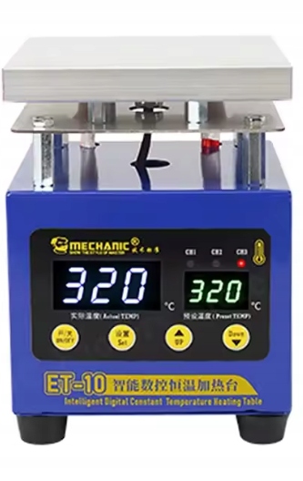 Нагрівальна платформа призначена для точного нагрівання електронних компонентів у процесах паяння, ремонту друкованих плат, розбирання РК-екранів та інших застосувань, що потребують контрольованої температури. Оснащений подвійним цифровим дисплеєм, що дозволяє одночасно контролювати задану та поточну температуру. Виготовлений з авіаційного алюмінію 6061, що забезпечує високу теплопровідність і рівномірний розподіл тепла без деформації при високих температурах.