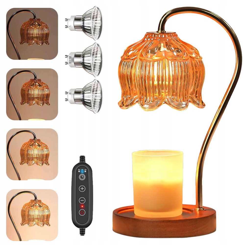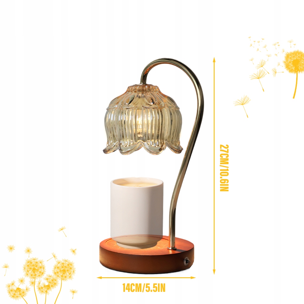 - Ця скляна нагрівальна лампа пропонує чотири налаштування яскравості за допомогою ручки тьмяності та оснащена перемикачем таймера з опціями 2 години/4 години/8 годин. Ви можете контролювати швидкість плавлення свічки, регулюючи яскравість і встановивши лампочку, щоб вона автоматично вимикалася в певний час. Він також служить ліжковою лампою, створюючи затишну атмосферу в спальні.