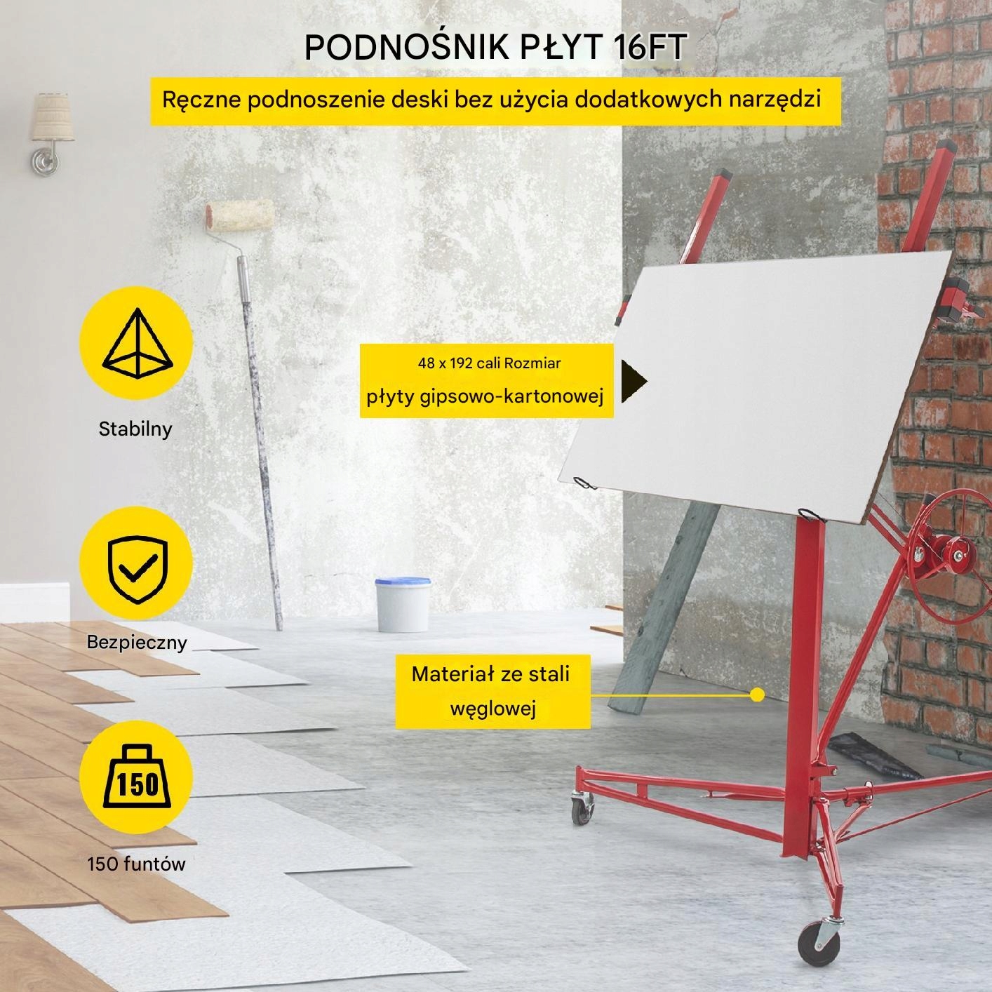 підйом покровителя може бути легко складений і розгортається без використання інструментів. Лебка значно полегшує роботу, що робить пристрій ідеальним для домашнього використання та самостійного складання гіпсової дошки або дощок.