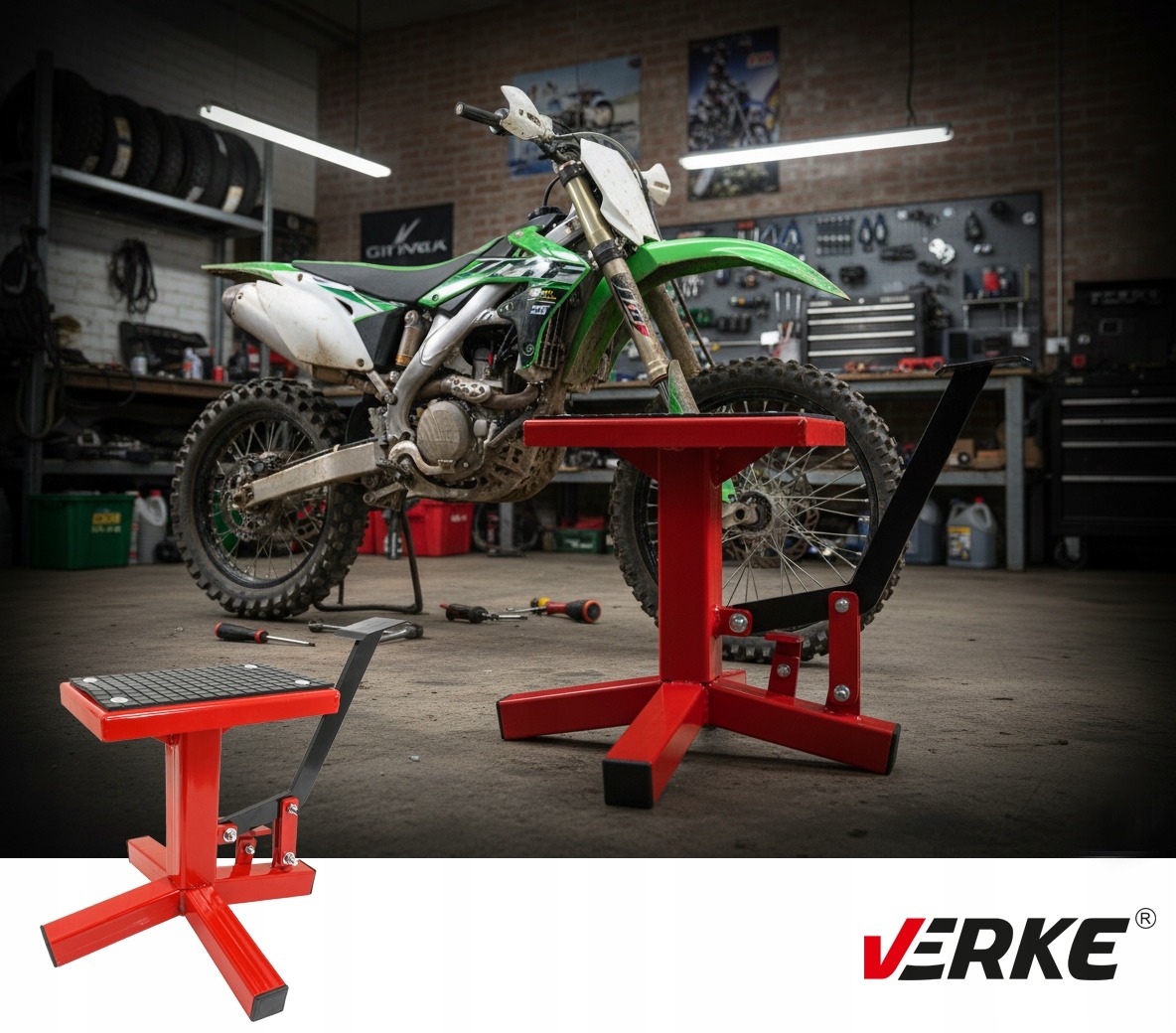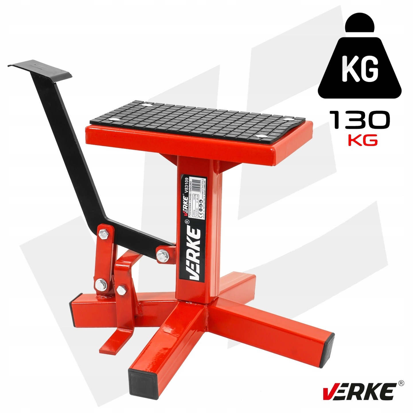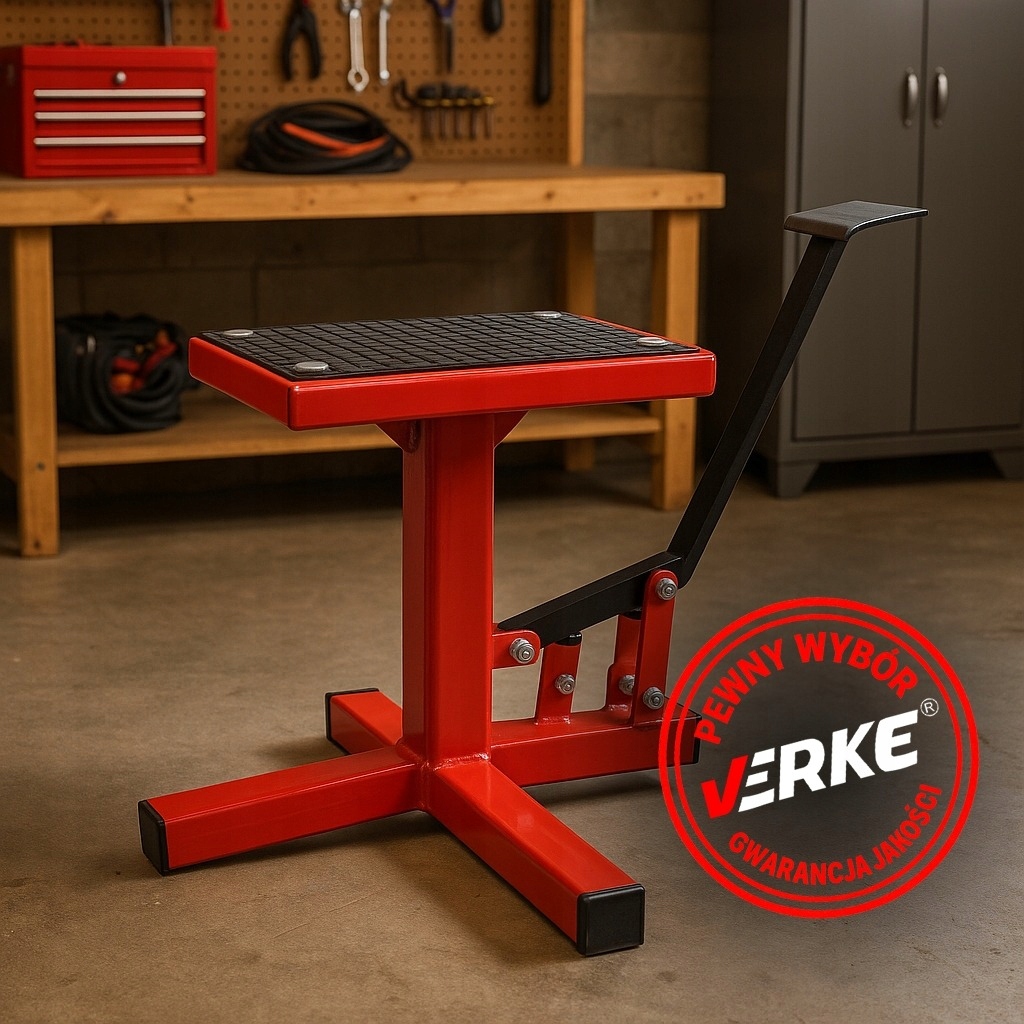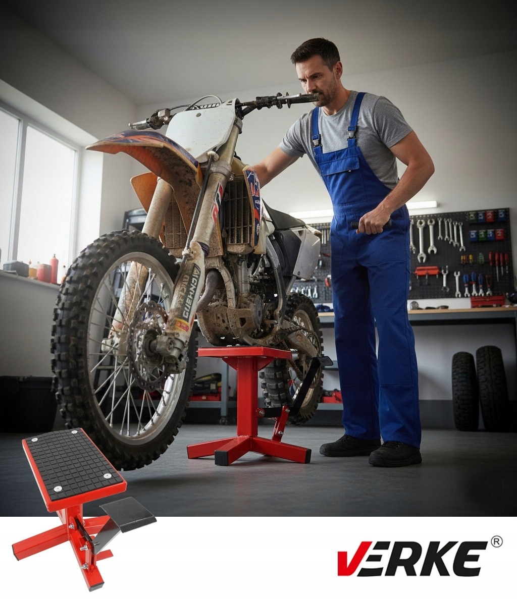 Професійна підставка для мотоцикла VERKE вагою 130 кг із гідравлічним циліндром — це надійне, функціональне та безпечне рішення, розроблене для мотоциклів CROSS, ENDURO та TRIAL.