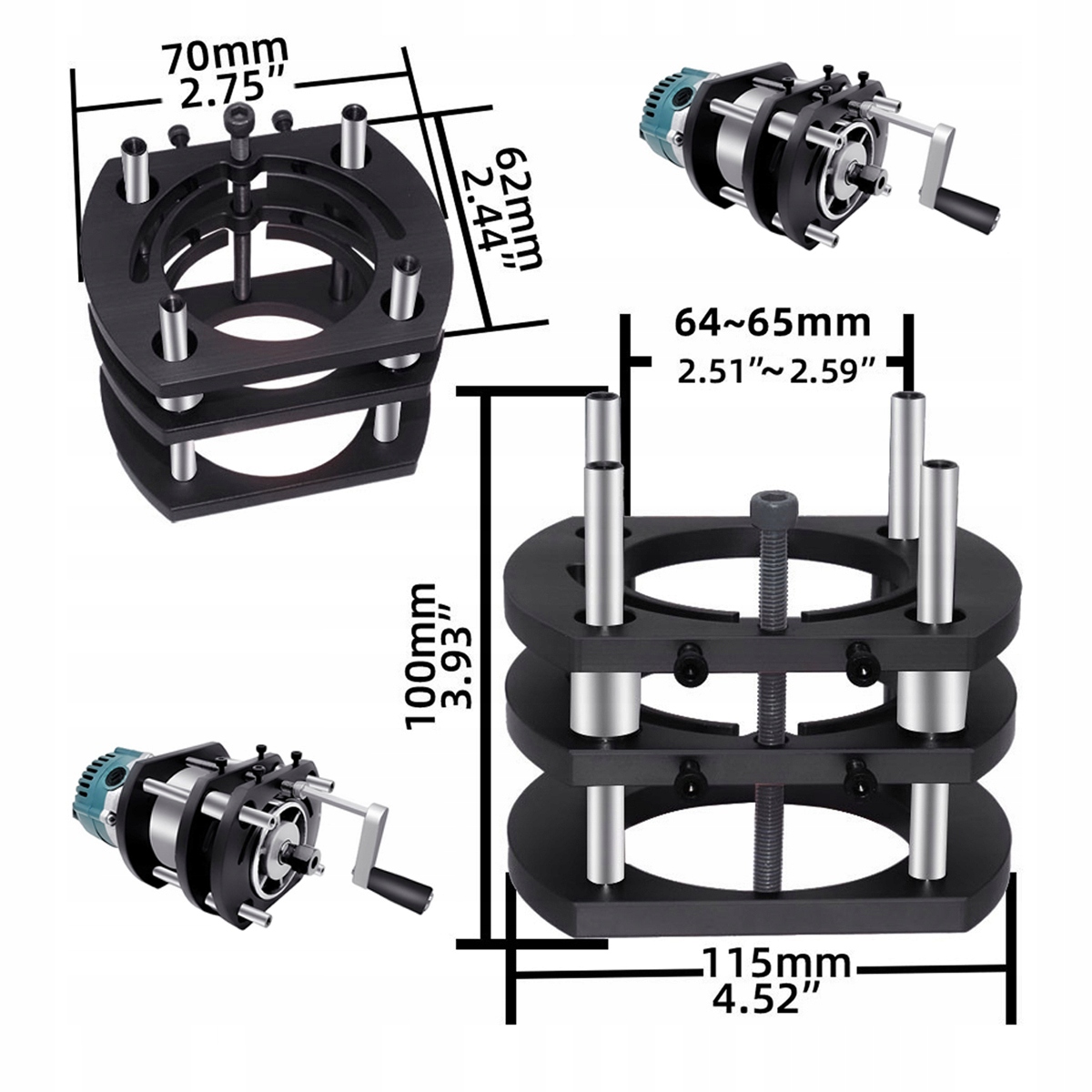 🔩Габаритні параметри: підйомна платформа з 4 ніжками максимум 51 мм, діаметр затискної машини для форми 64-66 мм, підходить для невеликих обрізних верстатів