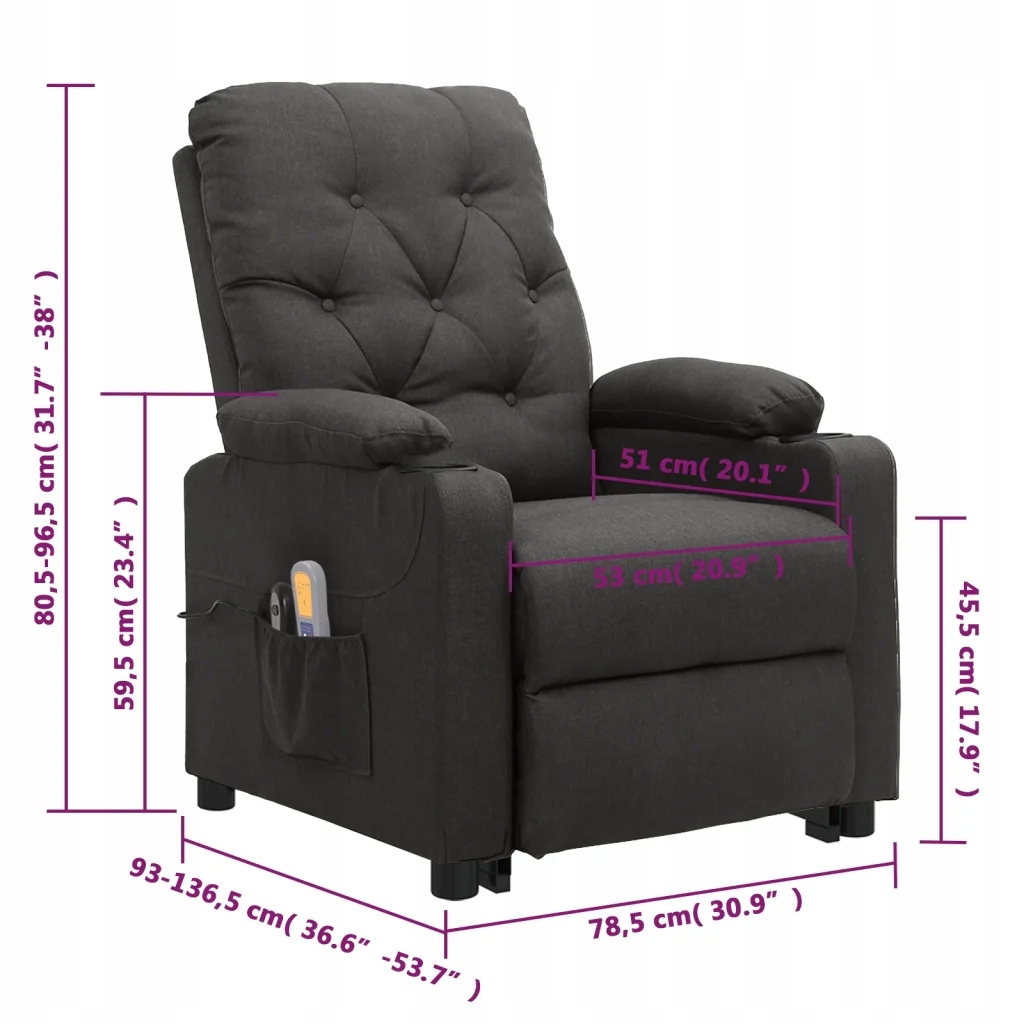 Сядьте зручніше та розслабтеся в цьому дуже зручному масажному кріслі, що піднімається та накидається, оббитому високоякісною тканиною!