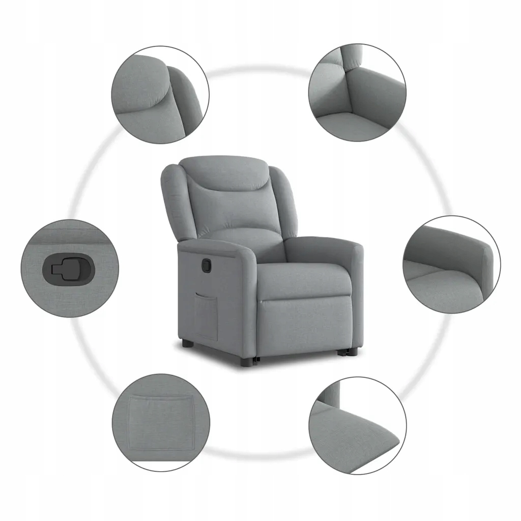Підйомне розкладне крісло, світло-сіре, з тканинною оббивкою
