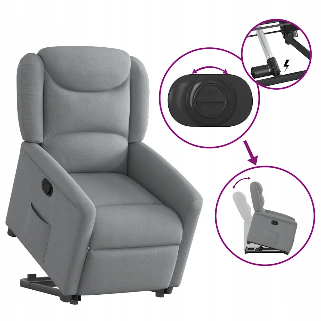 - Функція підйому: це крісло для літніх людей оснащено електричним двигуном для живлення підйомника. Завдяки функції підйому, яка штовхає все крісло вгору, ви можете легко встати, не напружуючи спину та коліна - просто натисніть кнопку.