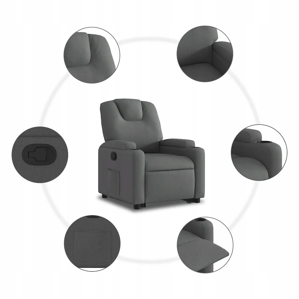 Підйомне розкладне крісло, темно-сіре, з тканинною оббивкою
