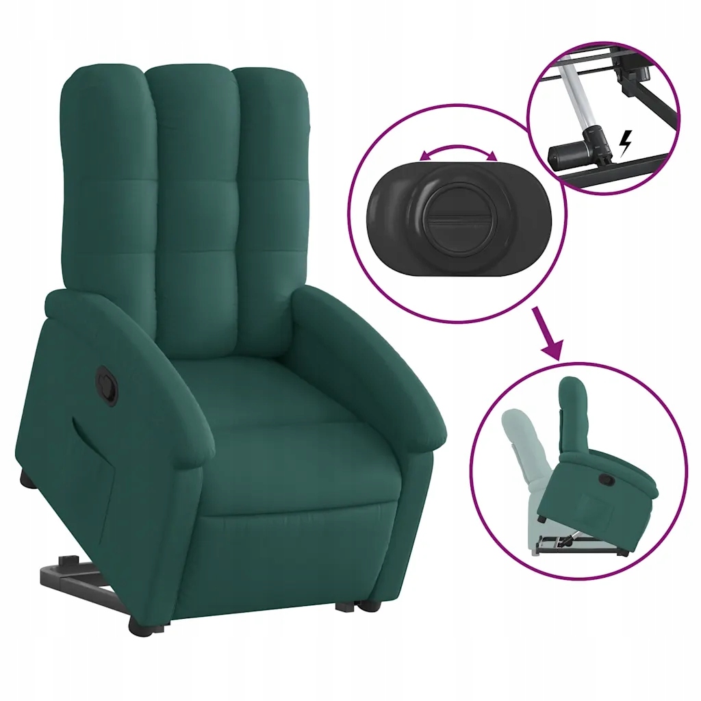 Підйомне розкладне крісло, темно-зелене, з тканинною оббивкою