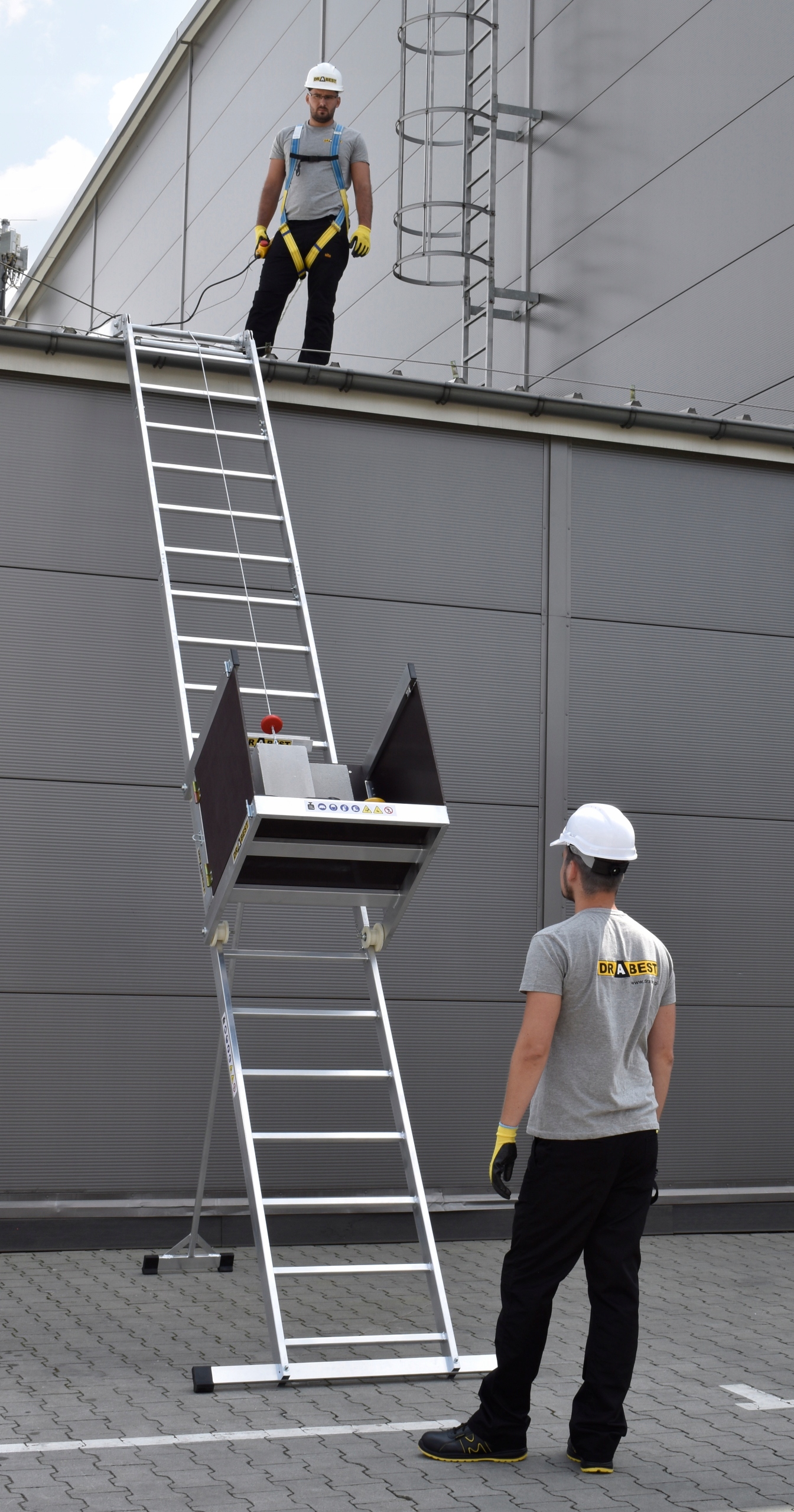 - Лебідка з рейковою драбиною DRABEST є універсальним і надійним продуктом, рекомендованим для швидкого транспортування, наприклад, черепиці чи інших речей. Він міцний, а його легке складання без використання інструментів економить час і витрати на робочу силу!