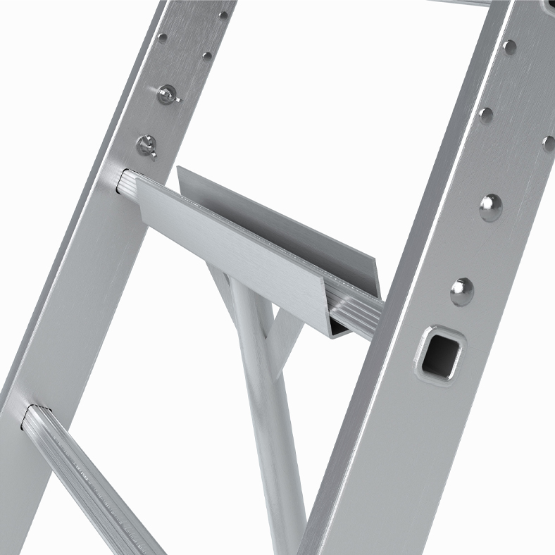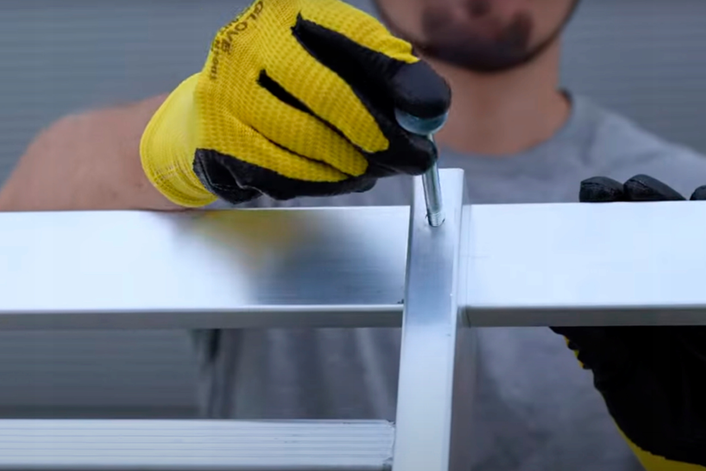 Сегменти збираються шляхом розміщення однієї частини драбини на спеціальному сталевому з’єднувачі, розташованому в іншій секції драбини, та скручування (замикання) цих сегментів за допомогою т.зв. гвинти. метелики. Таким чином ми отримуємо міцне з’єднання, зберігаючи легкість монтажу. Універсальність такого з’єднання полягає в тому, що можна з’єднувати будь-які сегменти.