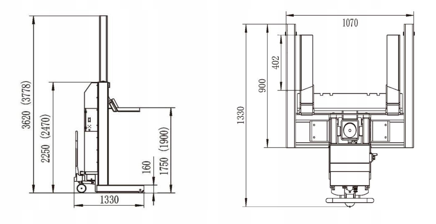 - Висота підйому: 1750 мм Напруга: 24 V)